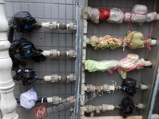 為防止家里的供水設施“被凍”,你可以采取以下幾種方式: ●安裝在室外的水表及水管,可用毛巾包捆;樓頂水箱應蓋好頂蓋,上下進水管及閥門等用保溫材料裹緊; ●如水表被凍住,用熱毛巾包裹,用不超過60℃的溫水澆灑,切勿澆沸水、用火烘烤; ●如水龍頭和水管(PPR和PVC管材)被凍住,可用電吹風烘吹,或用毛巾包裹后用溫水澆淋,同時可取硬物輕拍水管,直到管內冰凍消融; ●打開水龍頭,開成滴水狀態保持流水防止結冰; ●不常住人的房屋應關閉室內水表閥門,打開水龍頭,放盡水管中剩水。