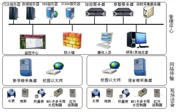 智慧校園節能監管系統由計量表具、數據采集及轉換裝置、數據傳輸網絡、數據中轉站、數據服務器、管理軟件組成。該系統主要用于對學校建筑能耗進行分類分項計量、數據統計、數據分析、節能分析及節能指標管理。系統具備能耗數據實時采集和通訊、遠程傳輸、自動分類統計、數據分析、指標比對、圖表顯示、報表管理、數據儲存、故障自動上傳等功能,為校園節能建設提供管理依據。